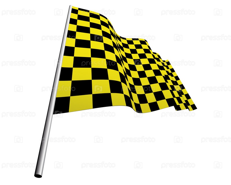 Желто-черный гоночный флаг, иллюстрация на белом фоне