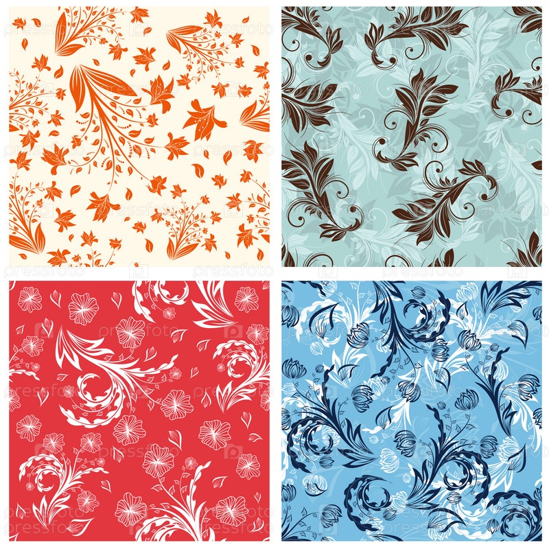 Набор бесшовных векторных цветочных узоров
