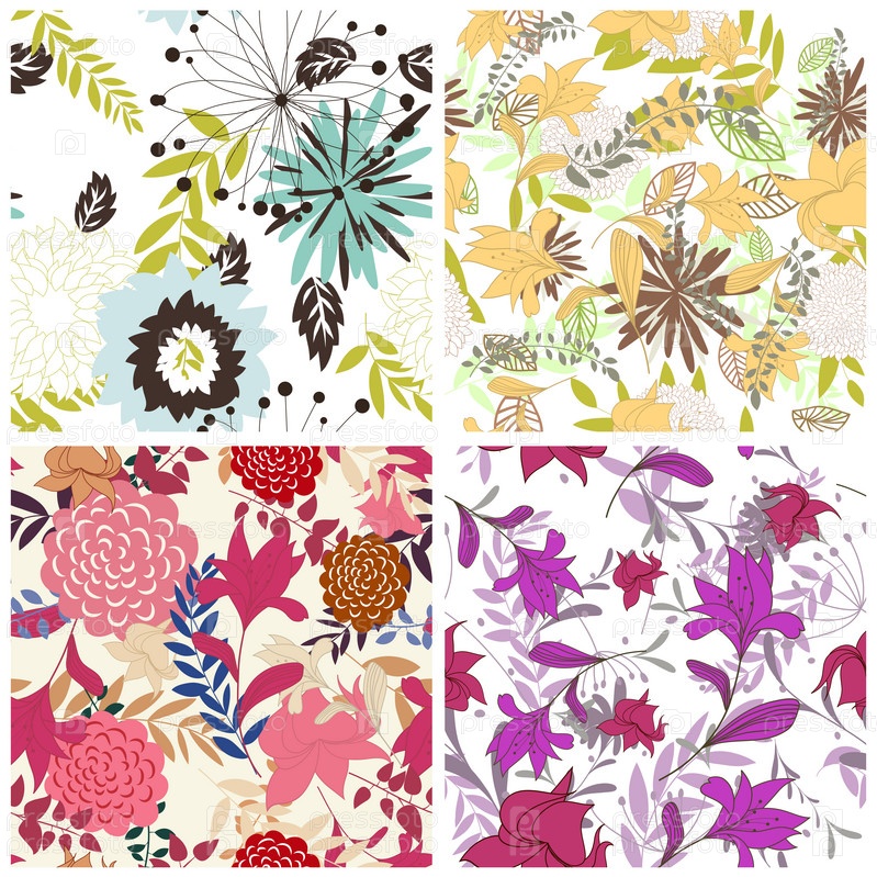 Набор бесшовных векторных цветочных узоров