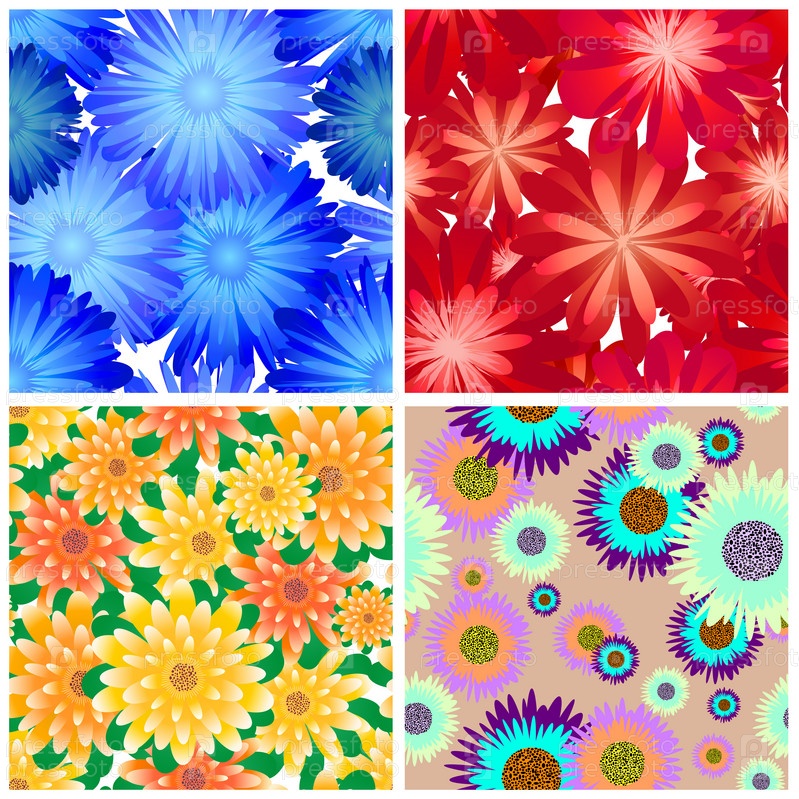 Набор бесшовных векторных цветочных узоров