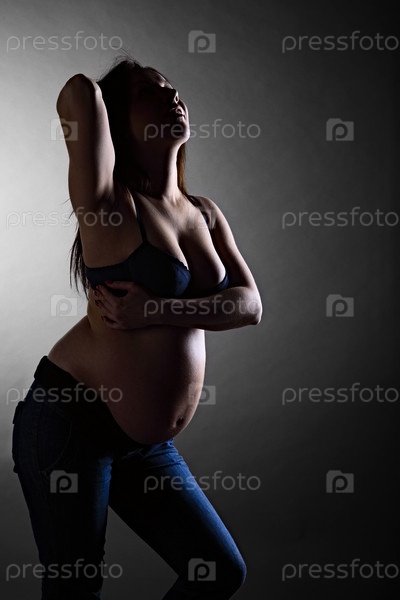 Беременная девушка позирует в студии