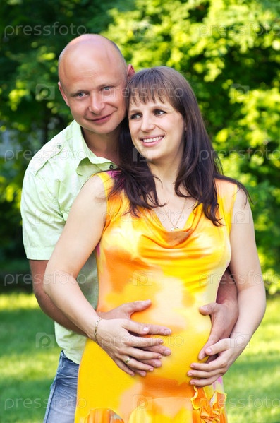 Беременная женщина с мужем в парке