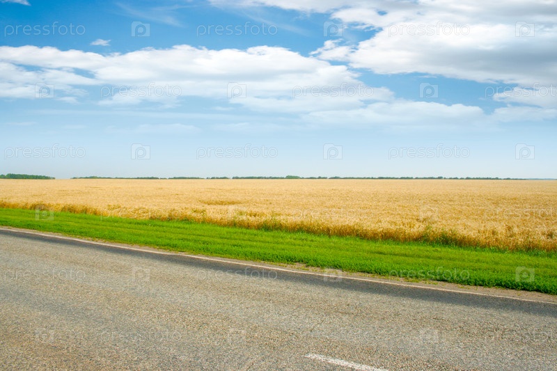 Дорога, проходящая мимо золотистого поля