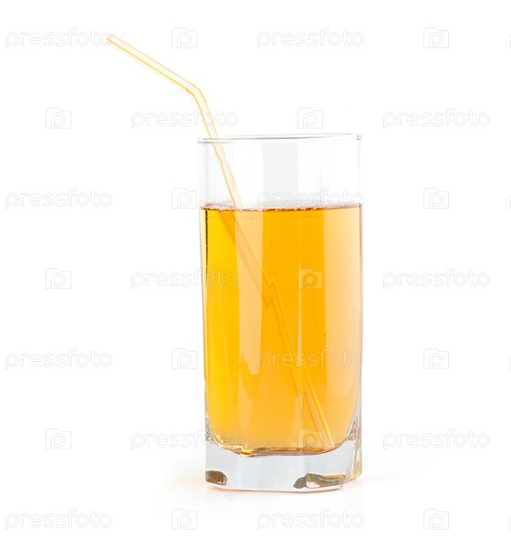 Стакан яблочного сока на белом фоне