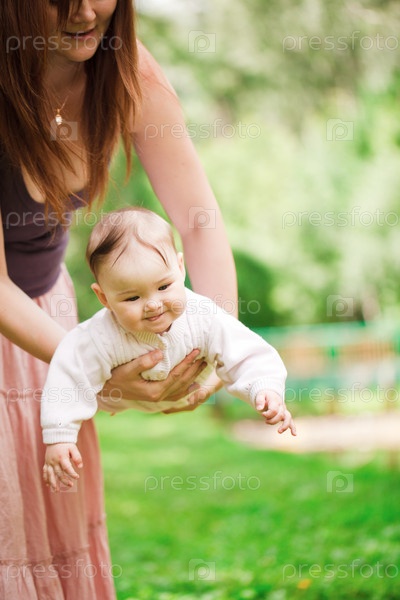 Счастливая мать с грудным ребенком на руках