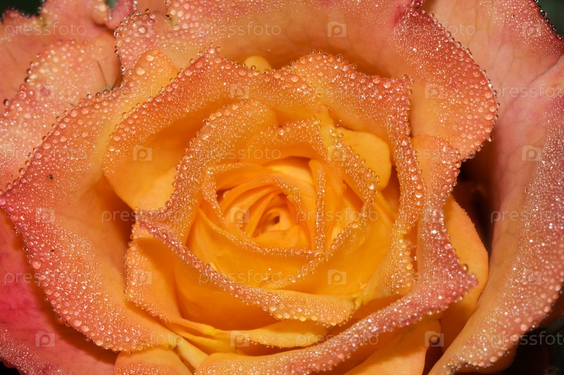 Желто-розовая роза с каплями утренней росы