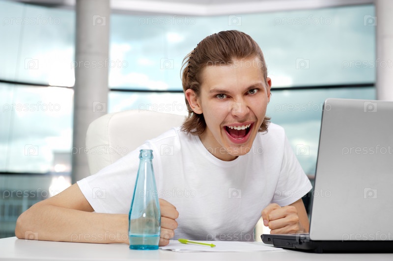 Мужчина в офисе с ноутбуком