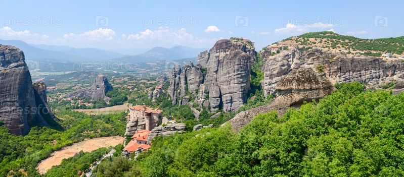 Греция, Метеоры, панорама долины Фессалия с плато