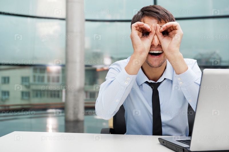 Мужчина в офисе с ноутбуком