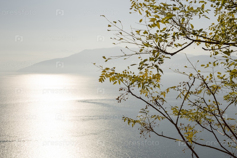 Ветви дерева на фоне Средиземного моря