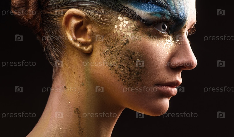 Молодая женщина с фантастическим макияжем крупным планом