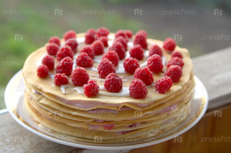 Блинный торт с малиной