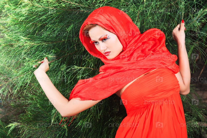 Азиатская женщина в лесу