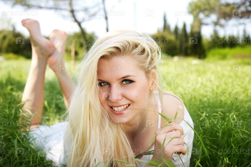 Красивая блондинка на поляне