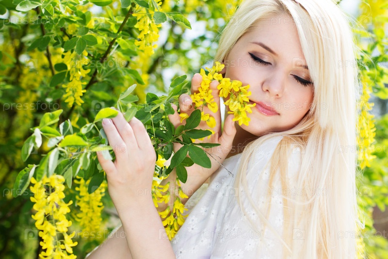 Красивая блондинка с желтыми цветами