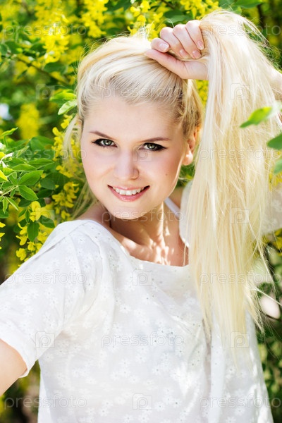Красивая блондинка с желтыми цветами