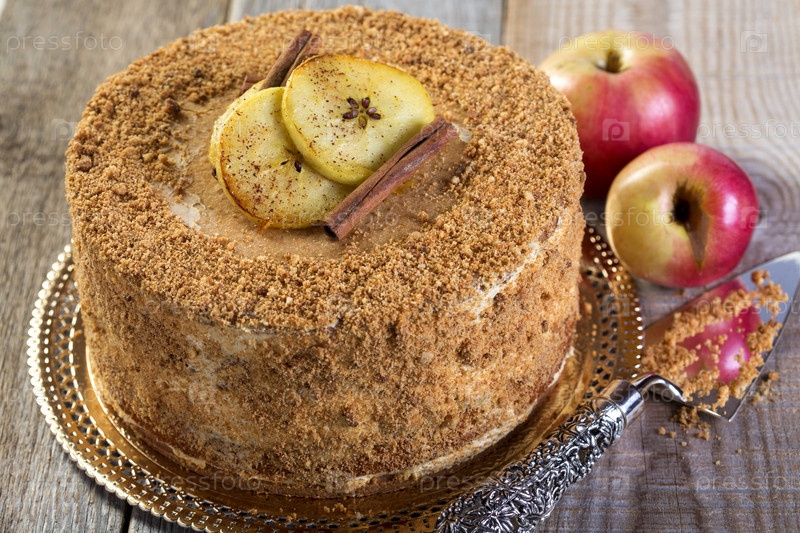 Торт с яблоками и баварским кремом
