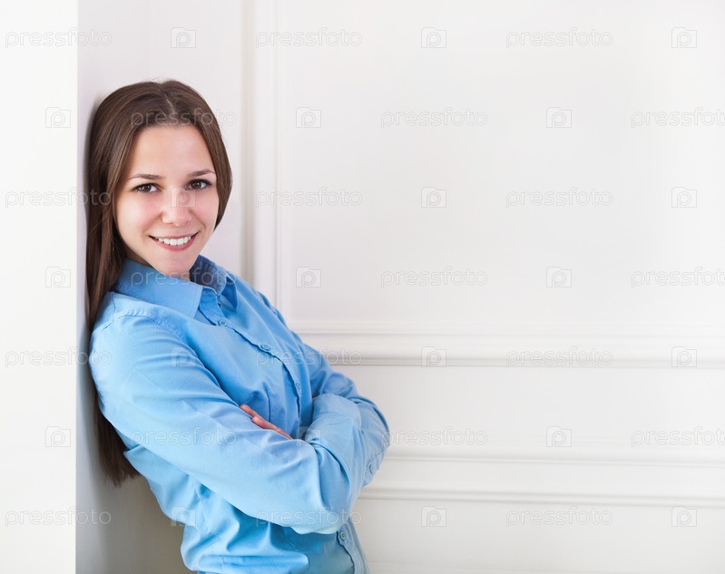 Симпатичная девушка у стены в комнате