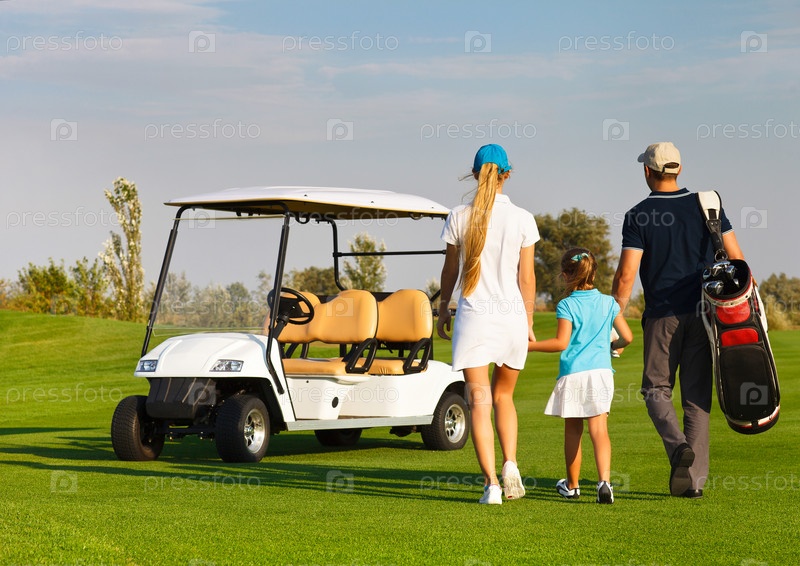 Молодая спортивная семья играет в гольф
