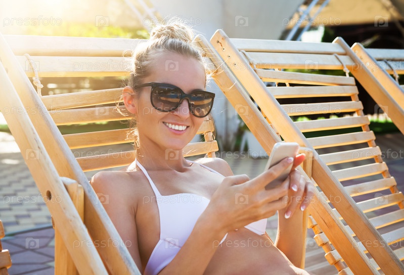 Счастливая женщина у бассейна