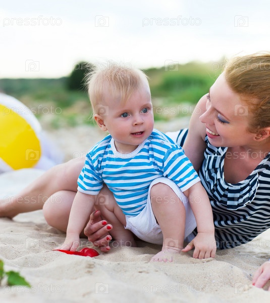 Счастливая семья отдыхает на пляже