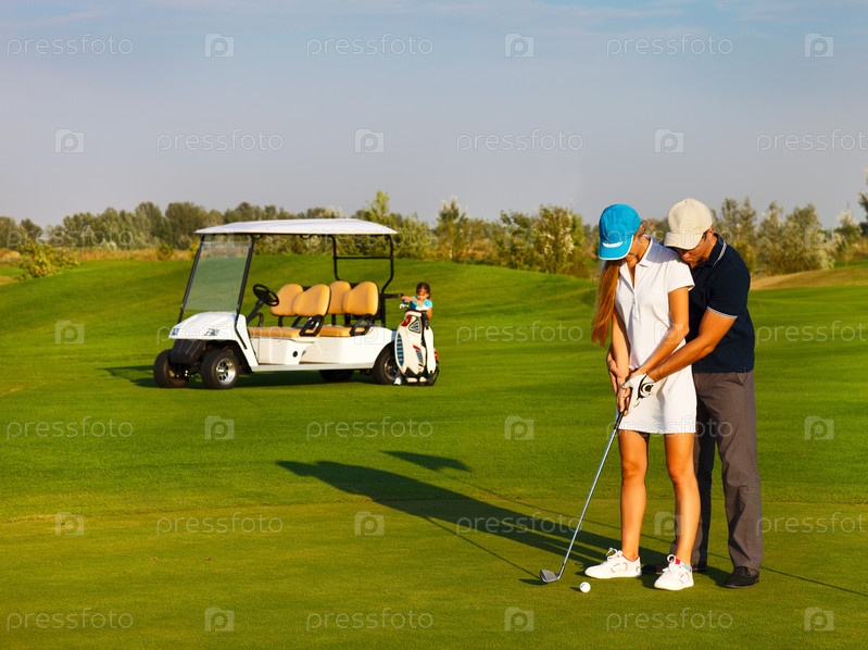 Спортивная семья играет в гольф
