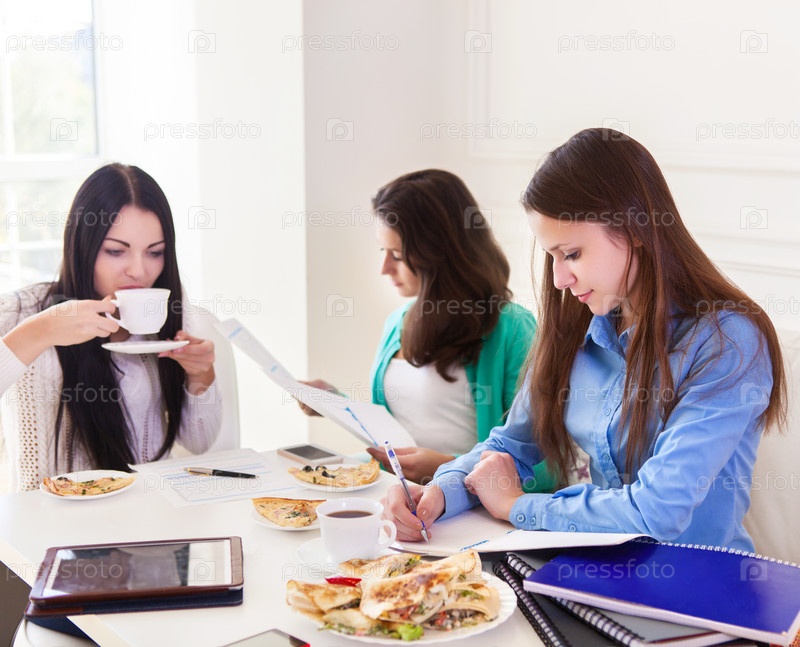 Студентки делают уроки