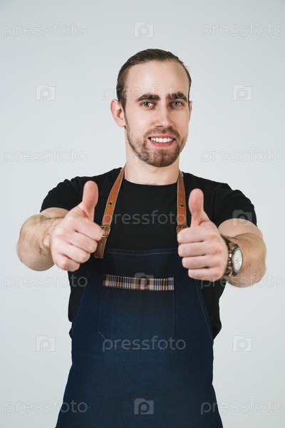 Молодой мужчина позирует на синем фоне