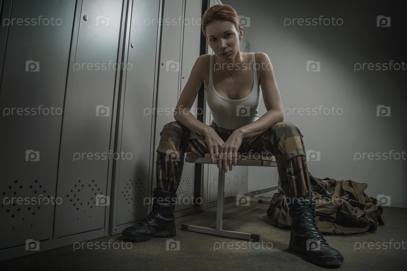 Военная женщина в раздевалке