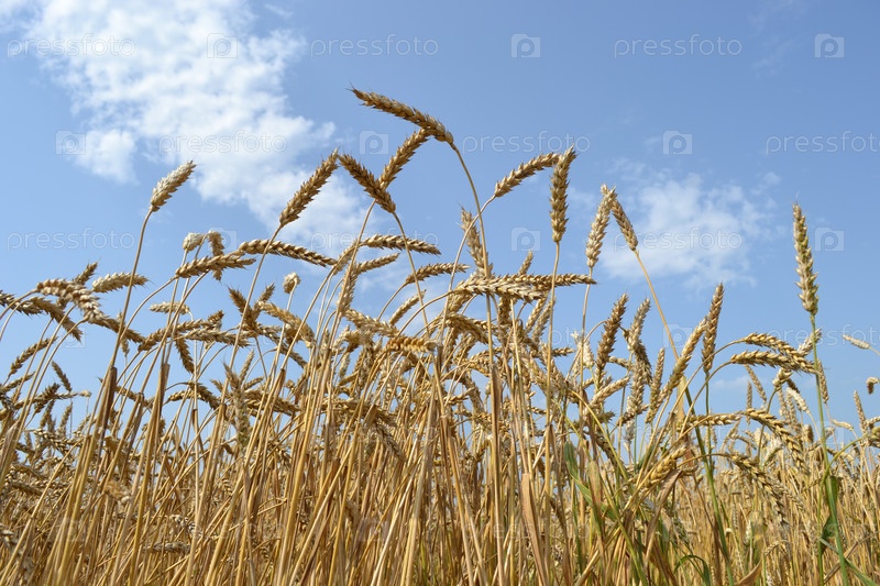 Спелые колосья на фоне голубого неба