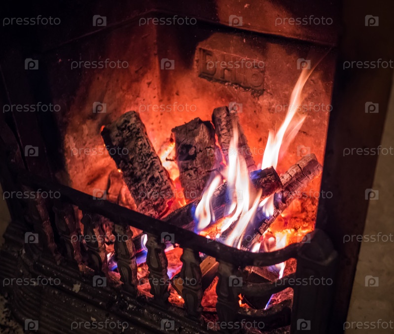 Горящий огонь в камине