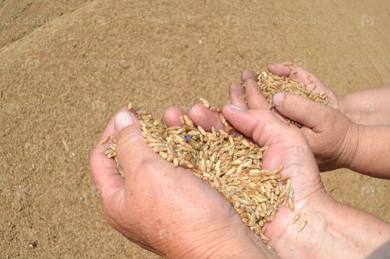 Зерно пшеницы в руках тружениц