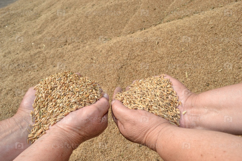 Зерно пшеницы в руках тружениц