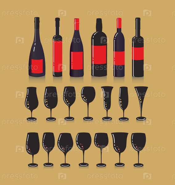 Шесть бутылок вина и бокалы к ним