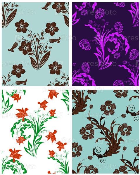 Коллекция из четырех абстрактных цветочных узоров