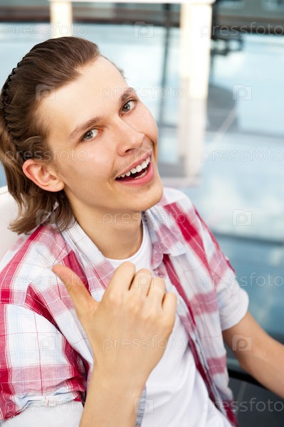 Счастливый парень, показывающий жест "Отлично"
