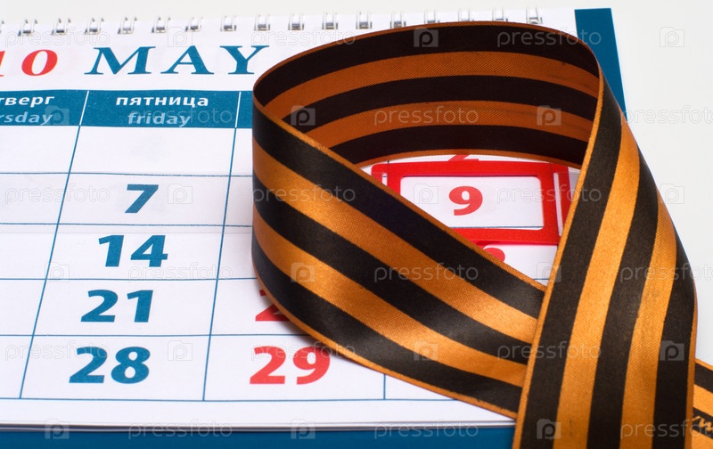 Календарь с датой 9 мая - день празднования Победы в России и Георгиевской ленты