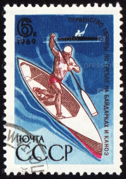 Почтовая марка СССР 1969 года, первенство Европы по гребле на байдарках