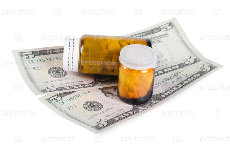 Упаковки таблеток и доллары