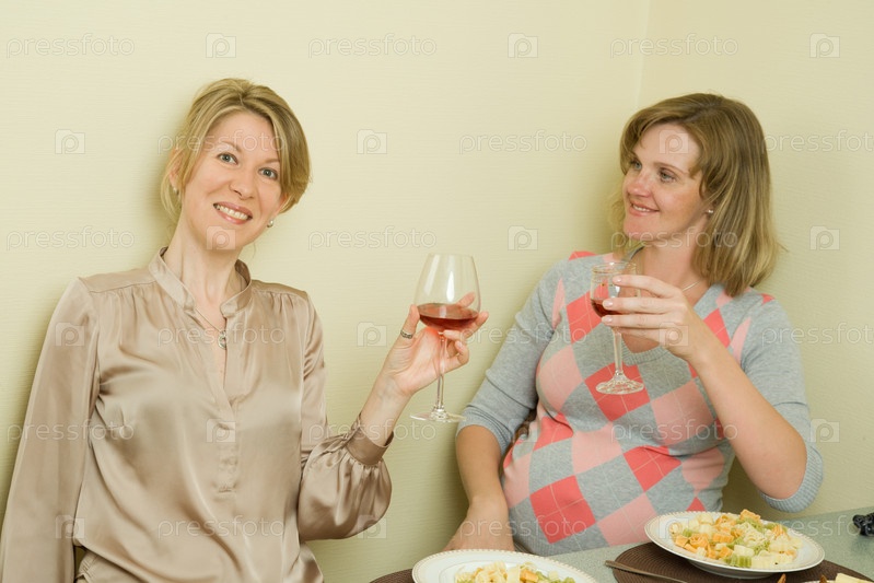 Беременная женщина с подругой кушают на кухне