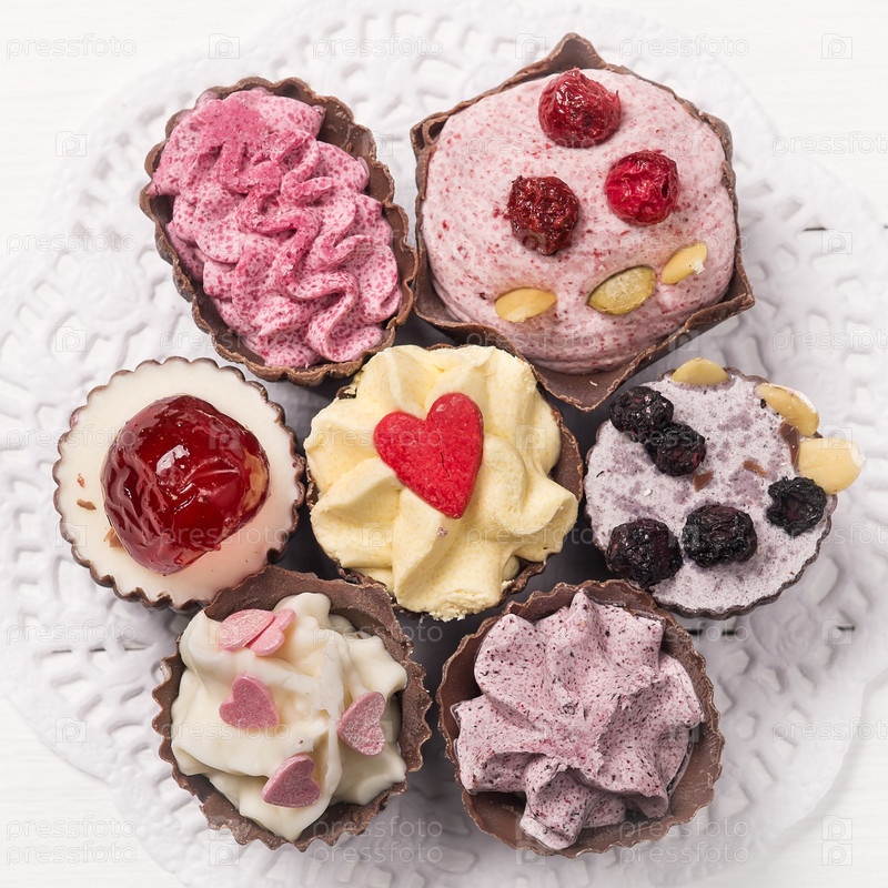 Шоколадные конфеты на бумажной салфетке, вид сверху