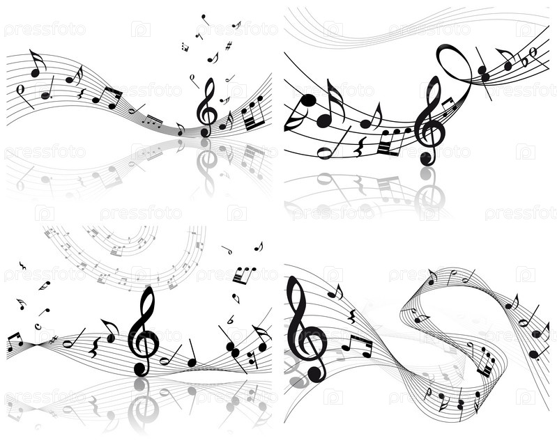 Музыкальные ноты и скрипичный ключ на белом фоне