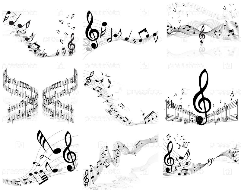 Музыкальные ноты и скрипичный ключ на белом фоне