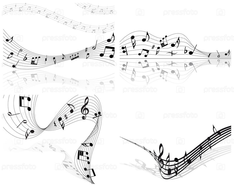 Музыкальные ноты и скрипичный ключ на белом фоне