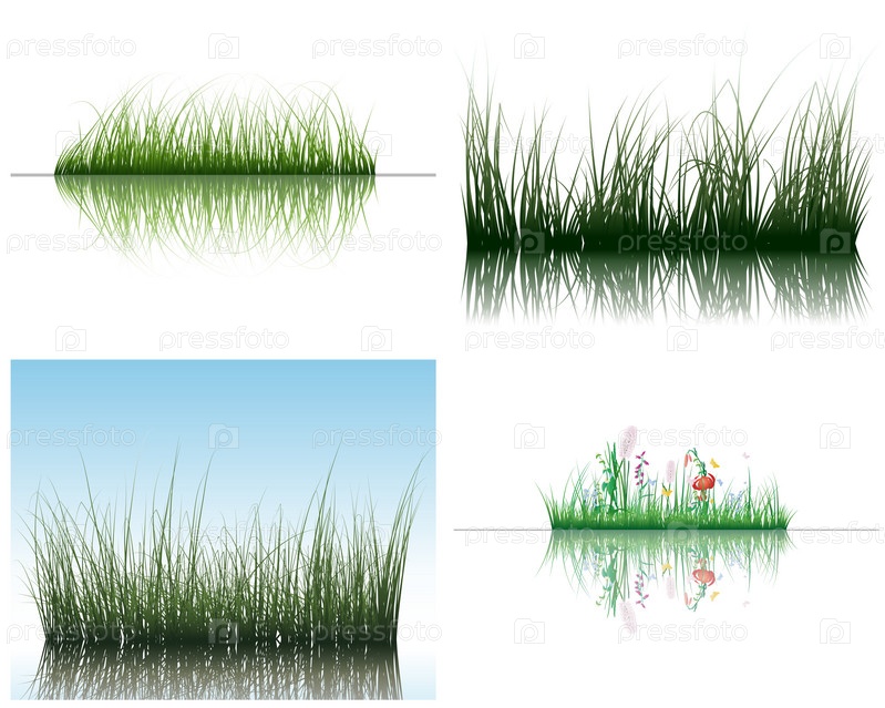 Зеленая трава на белом фоне и фоне неба
