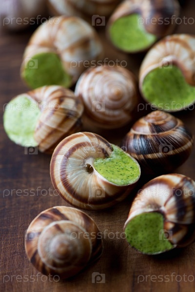 Улитки по-бургундски крупным планом