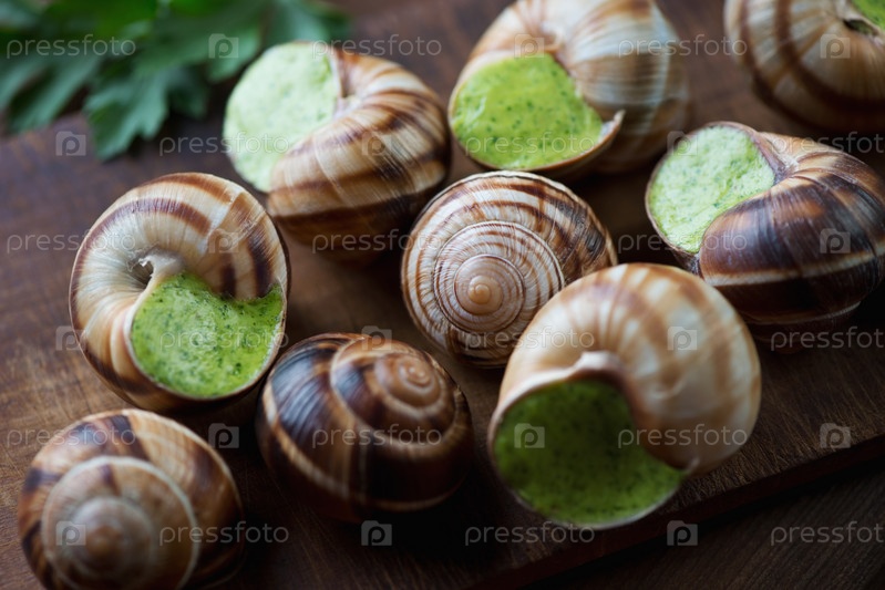 Улитки по-бургундски крупным планом