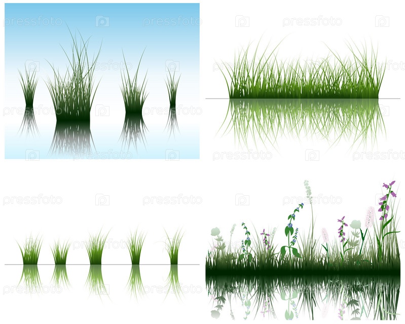 Зеленая трава на белом фоне и фоне неба