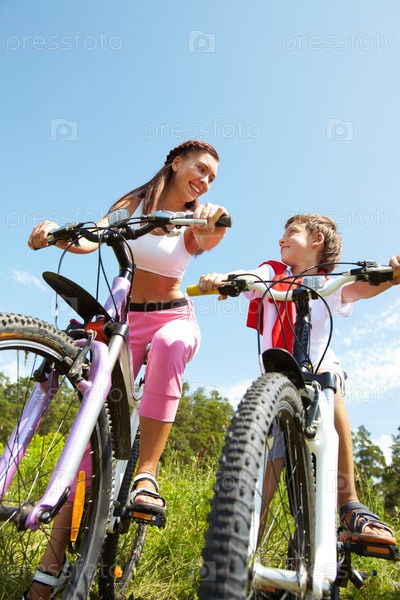 Мама с сыном на велосипедах