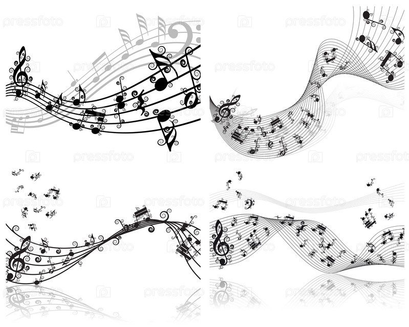 Музыкальные ноты и скрипичный ключ на белом фоне
